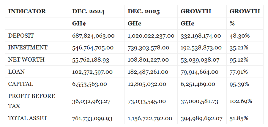The financial performance of Amansie Rural Bank PLC in recent years has been nothing short of remarkable. Between December 2024 and December 2025, the bank recorded strong growth across all major indicators. Deposits surged to a little over GH¢1billion, reflecting the confidence customers have in the institution.